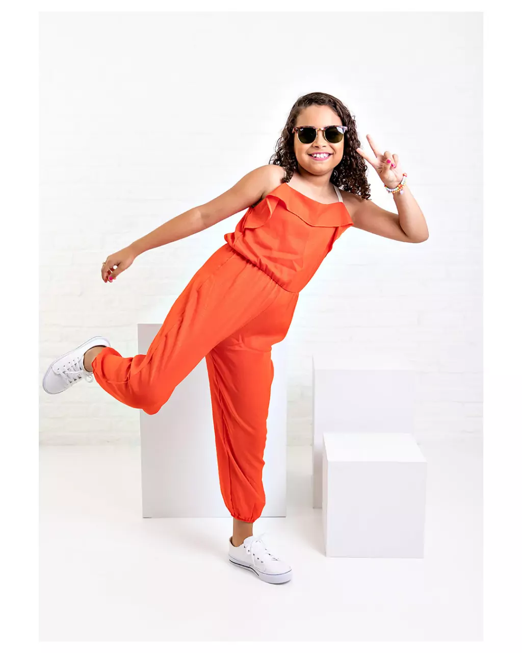 Lindo macacão jogging, confeccionado em tecido de crepe twill, com excelente caimento, leve, não amarrota facilmente é o conforto que toda criança precisa para se divertir, possui decote em canoa, alças duplas e reguláveis por amarração proporcionando maior conforto além de ter um delicado babado, elástico está presente na cintura e na barra da calça, possui uma cor laranja que já promete ser tendência para o verão 2023, podendo compor o look com uma linda jaqueta jeans.