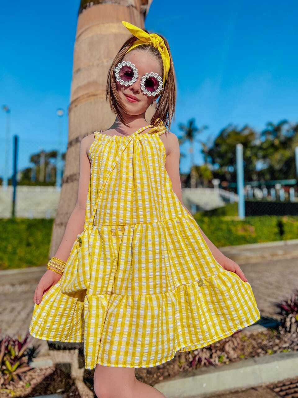Vestido Infantil Laura Xadrez Vicky Amarelo + Bolsinha, tem todo o conforto que nossas crianças precisam. Perfeito para os dias de calor, o vestido é super leve e fluido, possui amarração para melhor regulagem na manga facilitando na hora de vestir acompanha uma linda bolsinha, confeccionado em viscose, godê, pode ser usado em diversas ocasiões, fica lindíssimo com jaqueta, tênis, sandália ou bota.